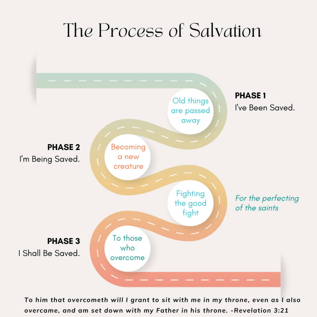 (This graphic only represents a high-level overview of a picture of salvation. High-level meaning if you were very high up, your perspective looking down at something would only see the big picture, not details. There is so much to know about salvation, and it is impossible to learn everything from one diagram, one picture, one teaching, or one service – but it is worth your time to invest and learn as Proverbs 23 instructs us to “buy the truth and sell it not”.)